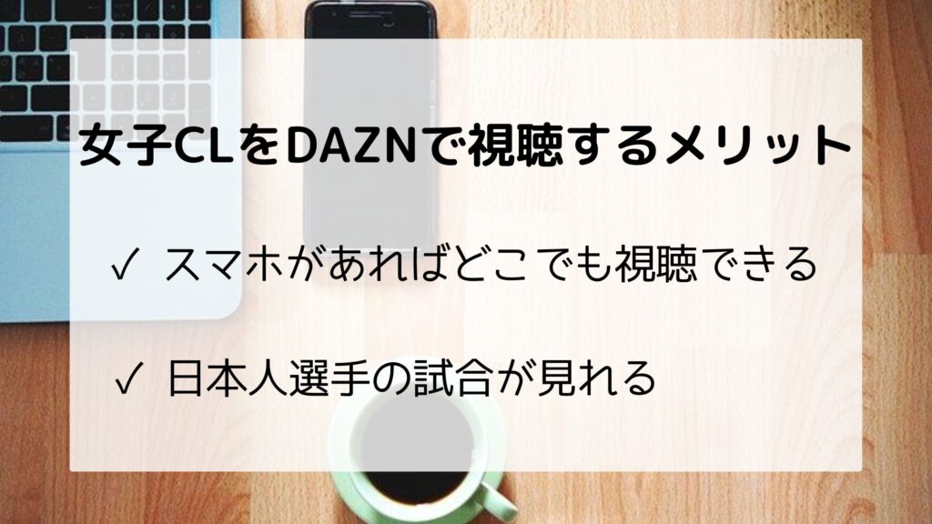 女子CLは、DAZNやYouTubeで視聴できますが、わかりやすいDAZNがおすすめです。